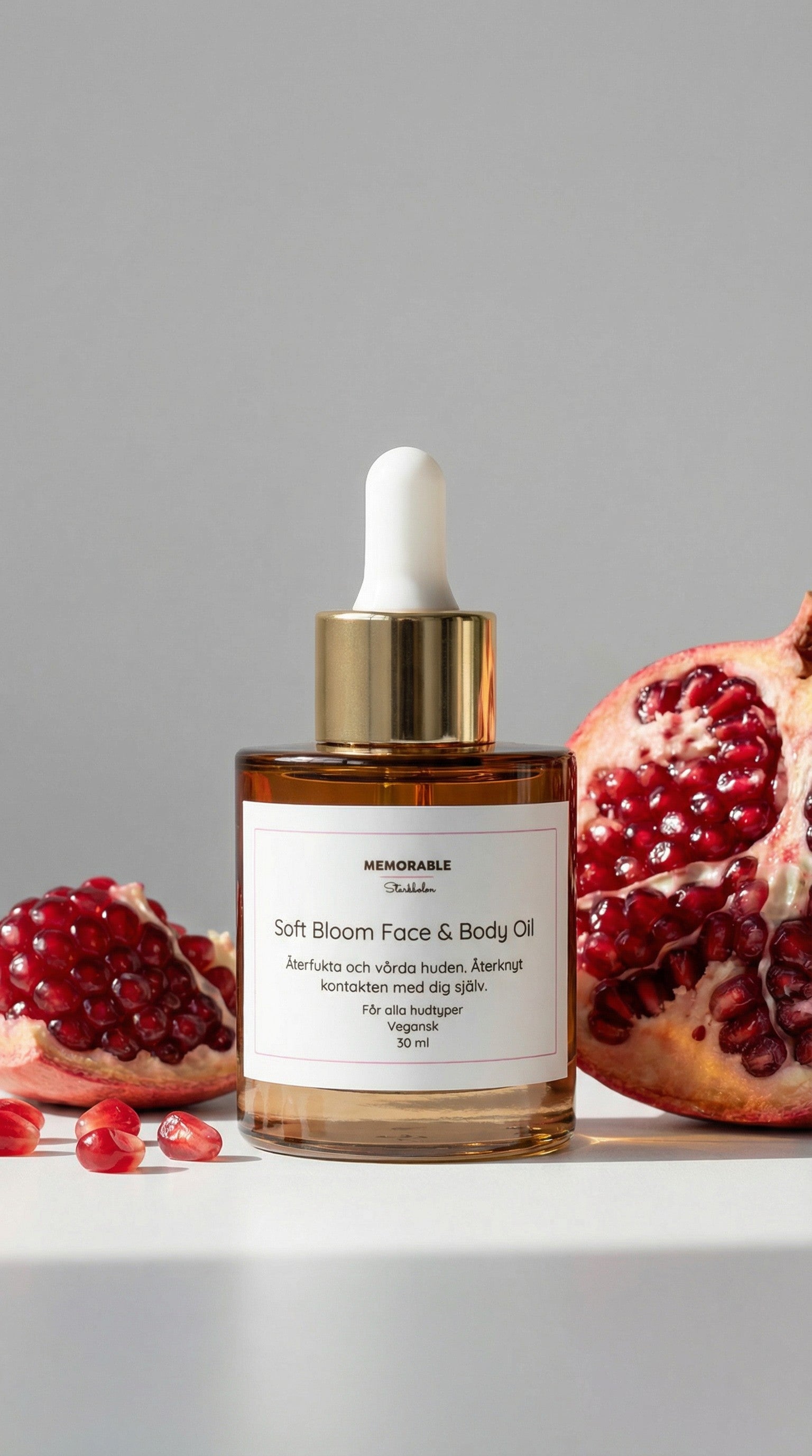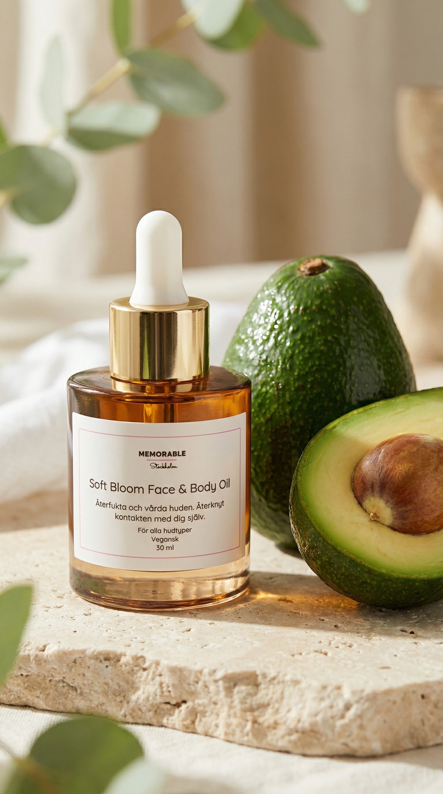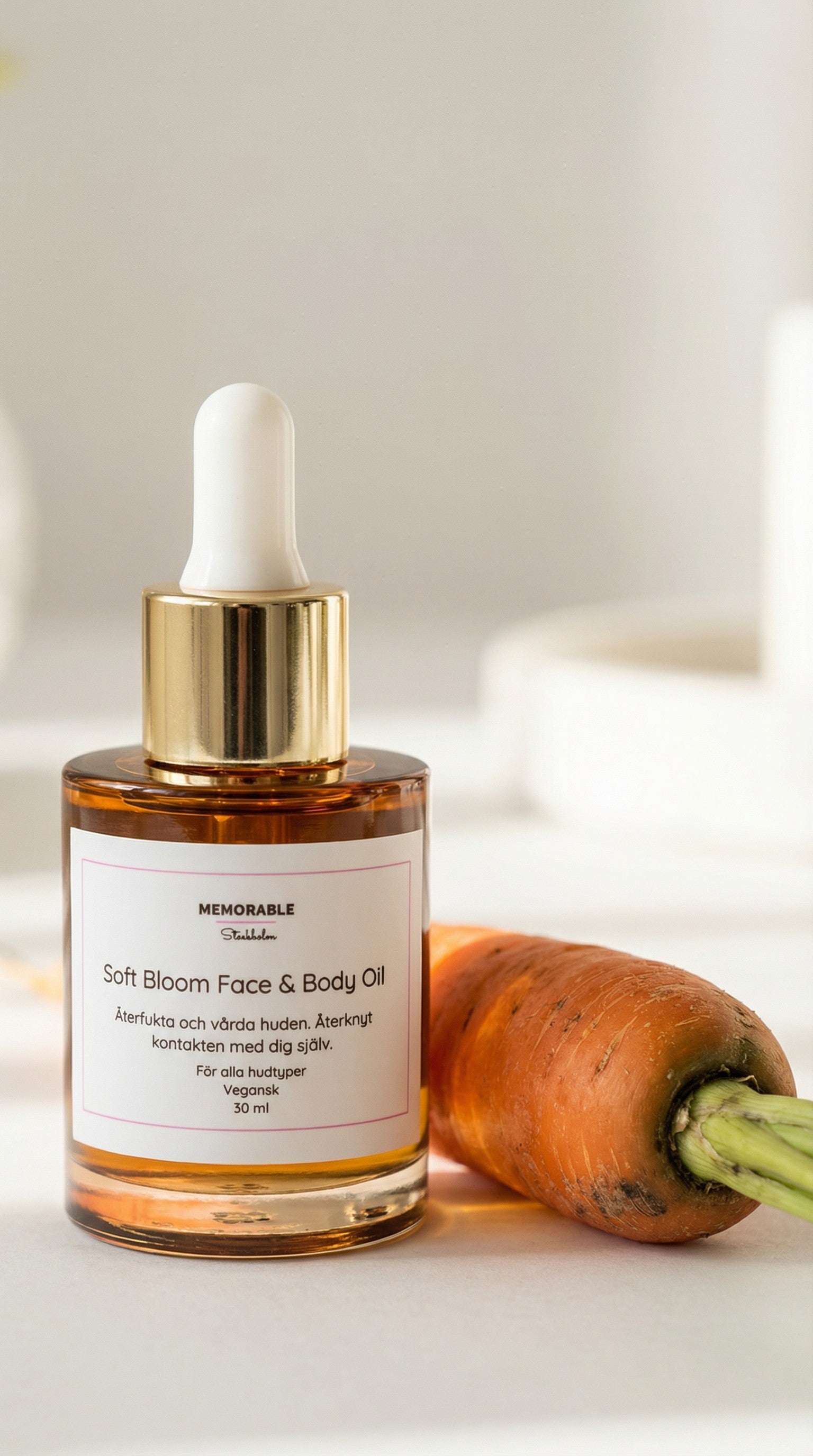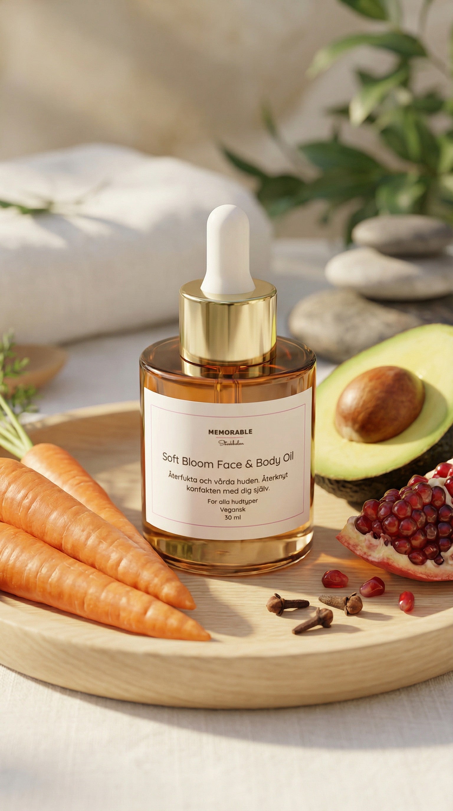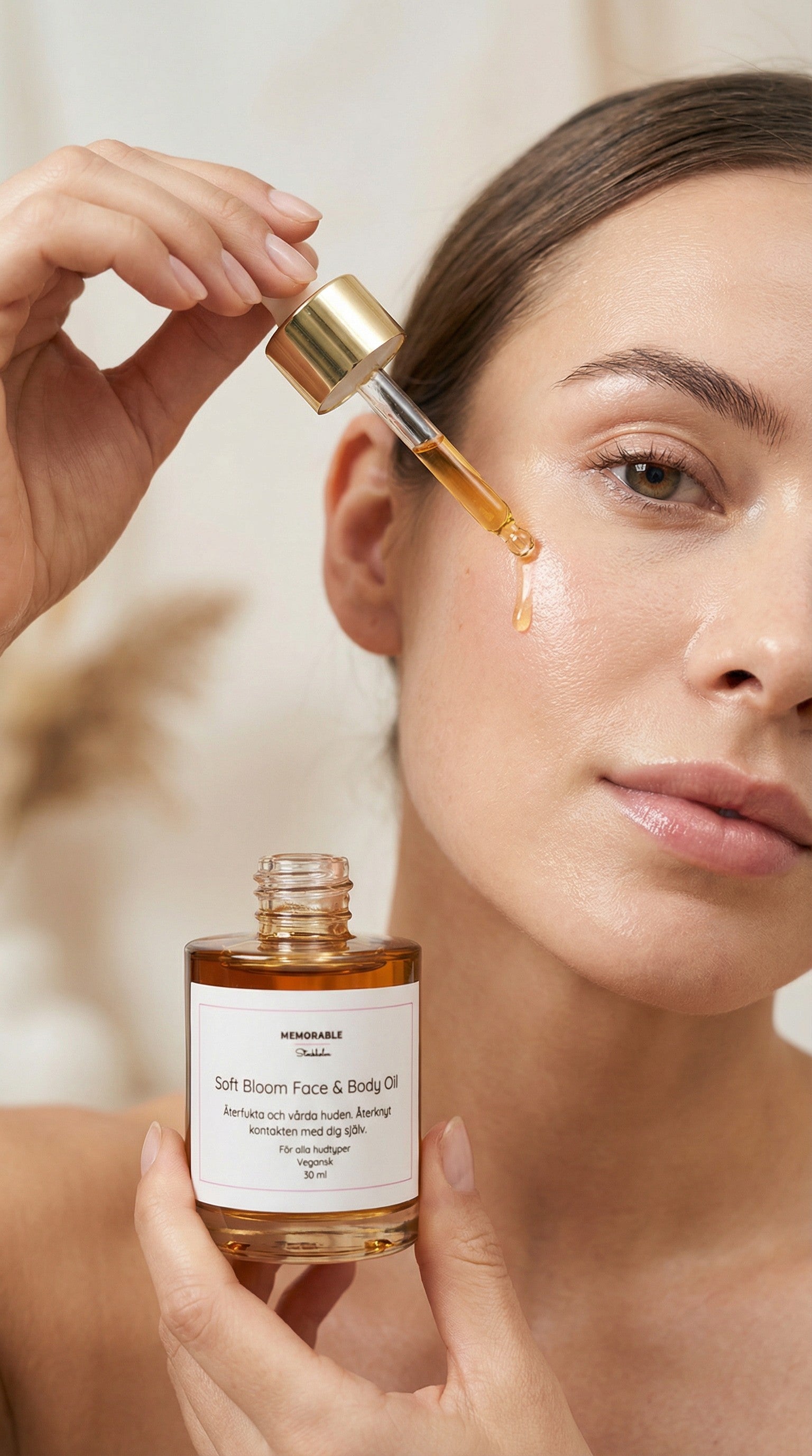 Soft Bloom Face & Body Oil är en näringsrik olja för ansikte och kropp som kan användas som serum under ansiktskräm eller på lätt fuktad hud efter dusch. Den ger huden en mjukt återfuktad och välvårdad känsla, med en naturlig och hälsosam lyster. Passar särskilt under torrare eller solfattiga perioder.